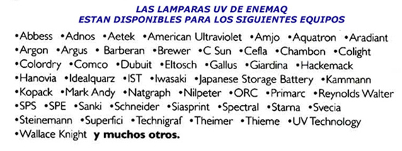 Las lámparas ultravioleta de ENEMAQ están disponibles y son compatibles con la casi todos los sistemas industriales del mercado.