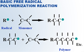 En la foto se puede ver el mecanismo básico de la reacción de polimerización por luz UV. |